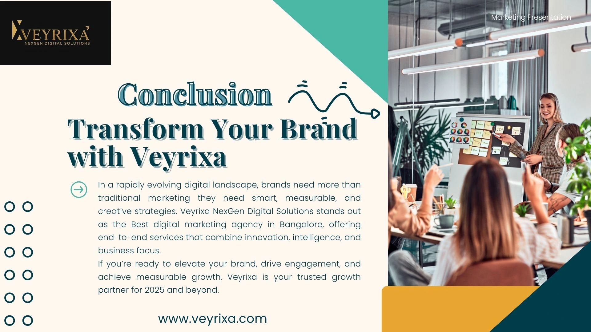 Veyrixa is not just another digital marketing agency; it’s a trusted growth partner for businesses across India. Known as the Best digital marketing agency in India and a leading Best branding agency in Bangalore, Veyrixa combines precision, insights, and intelligence to deliver strategies that work.best digital marketing agencies in Bangalore